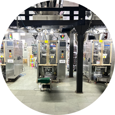 Raw materials such as flour, spices, edible oil etc. are received and inspected for quality and freshness in in-house lab & adequate storage facilities are provided to ensure proper inventory management and preservation of raw materials. The processing houses has specialized equipment for cleaning, grinding, mixing, and extruding raw materials into snack products. Modern machinery, including mixers, grinders, extruders, and fryers is utilized to efficiently produce a variety of snacks. Automated systems ensure precise seasoning application according to recipes. Frying and Roasting units equipped with temperature control to ensure consistent product quality and uniform cooking.